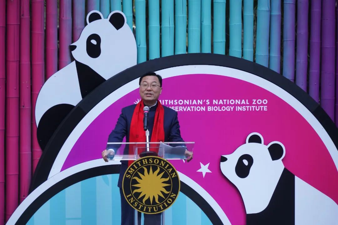 谢锋在致辞中表示,保护大熊猫就是守护大自然,拥抱大熊猫就是拥抱和平与友谊,温和敦厚的大熊猫不应被妖魔化,互利共赢的大熊猫保护合作不应被政治化。有中国网友给我留言,没有什么烦恼是一只熊猫解决不了的,如果不行,那就两只。有美国朋友对我说,喜爱大熊猫已经写在了基因里。中美人民对大熊猫的共同热爱,让我相信中美两国的共同点多于不同点;双方大熊猫保护合作取得的巨大成就,让我相信中美携手合作,就能办成事、办好事、办大事,既造福两国,也惠及世界。